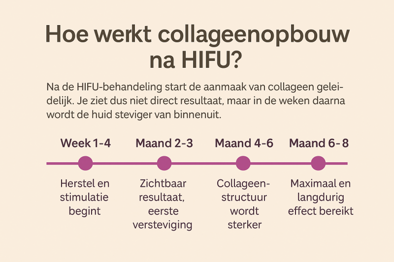 Na de HIFU-behandeling start jouw huid met een natuurlijk herstelproces. Door de diepe warmtepunten die HIFU aanbrengt, worden de fibroblasten in je huid geactiveerd — dit zijn de cellen die verantwoordelijk zijn voor de aanmaak van collageen en elastine.